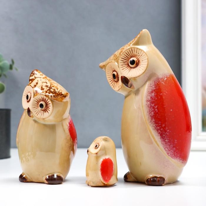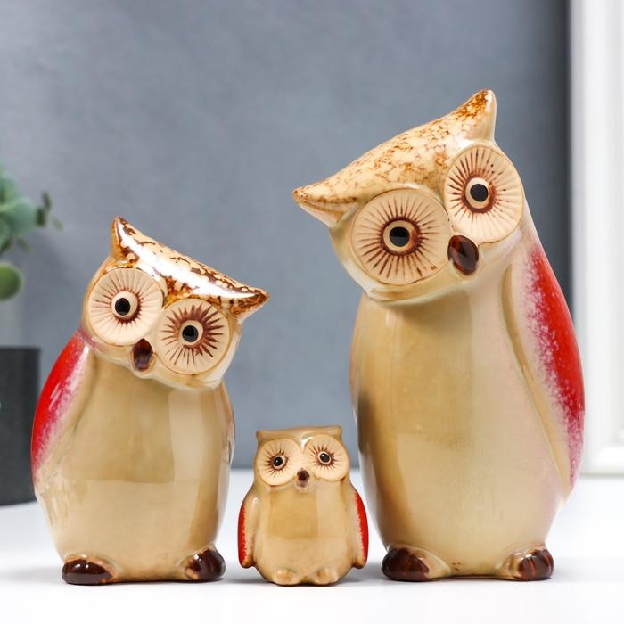 Сувенир керамика "Совы - папа, мама, я" набор 3 шт 5,5х4,3х3 13х6,5х6,3 18х8х6 см
