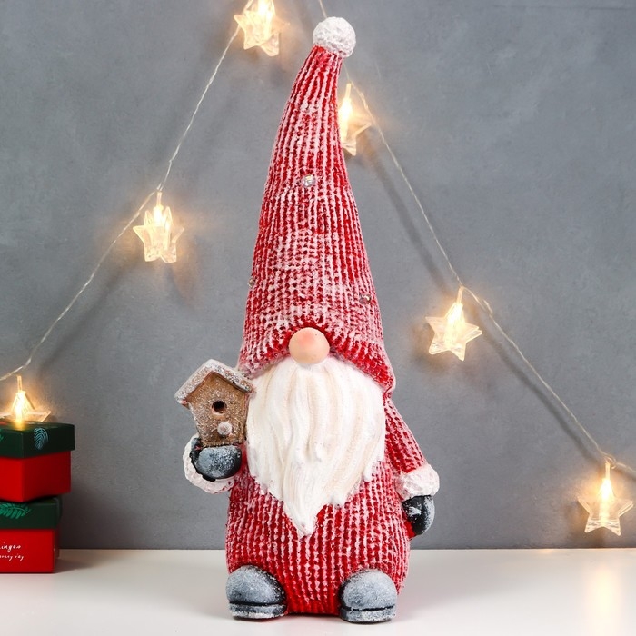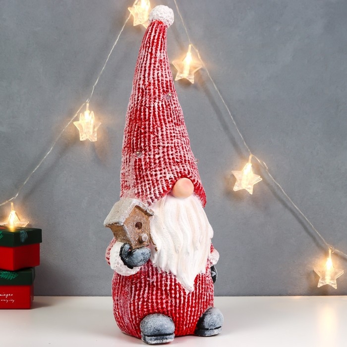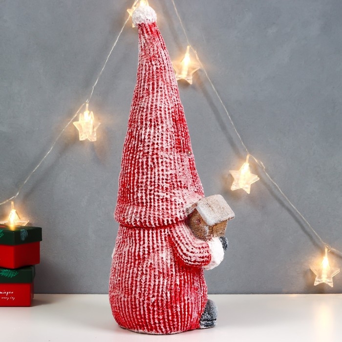 Сувенир керамика свет "Дедуля Мороз в красном полосатом наряде со скворечником" 47х21х15 см 756797