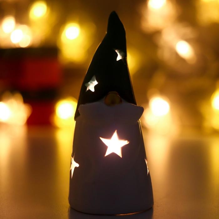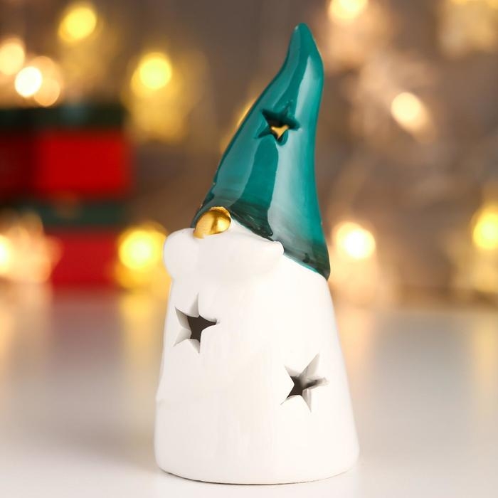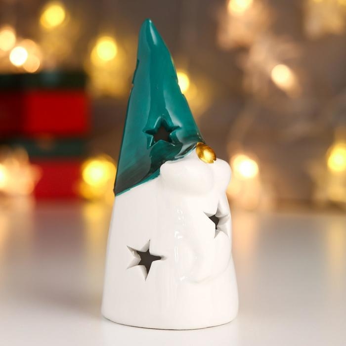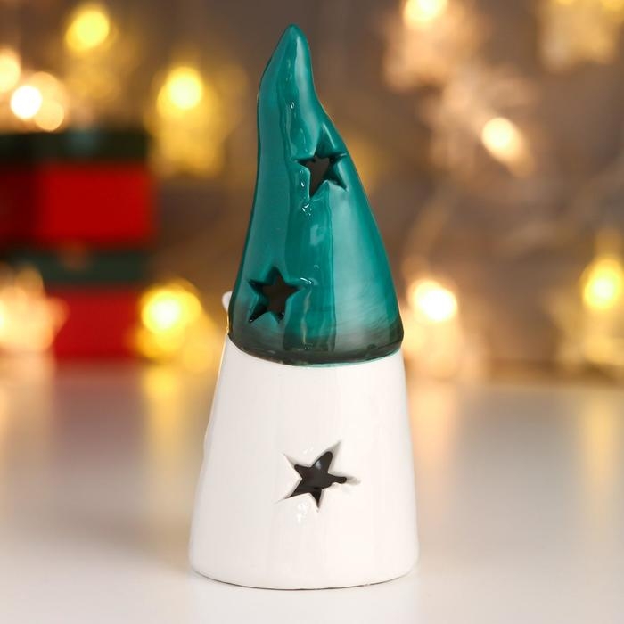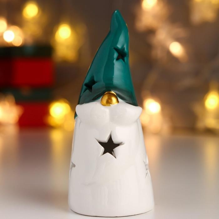 Сувенир керамика свет "Дедушка Мороз, зелёный колпак, золотой нос, звёзды" 12,5х5,5х5,5 см