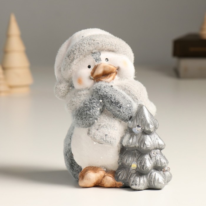 Сувенир керамика свет "Пингвин в новогоднем колпаке и шарфике у ёлочки" 12х8,8х15,8 см