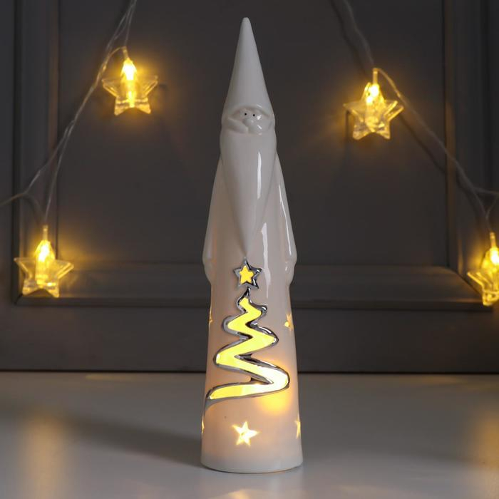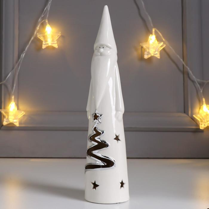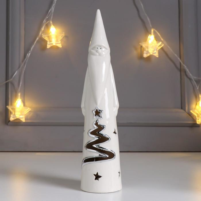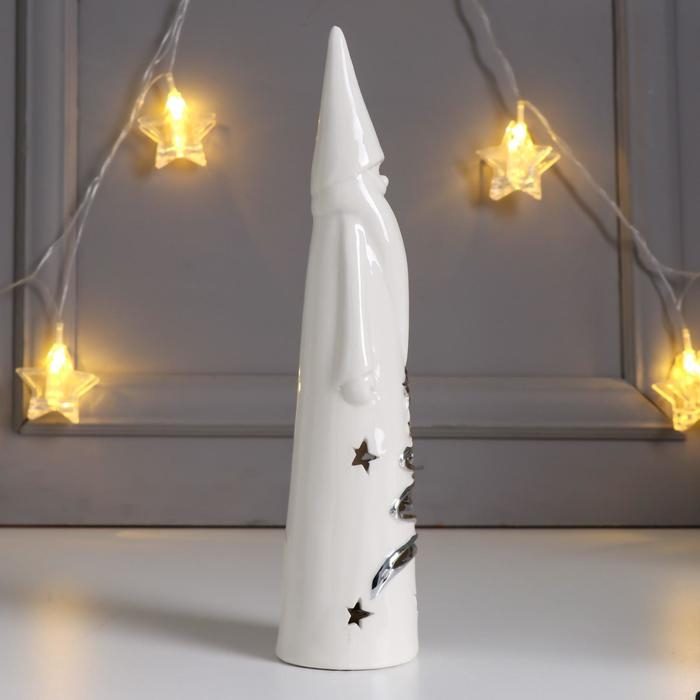 Сувенир керамика световой "Дедушка Мороз с ёлочкой на шубе" серебро 25х5,7х5,7 см