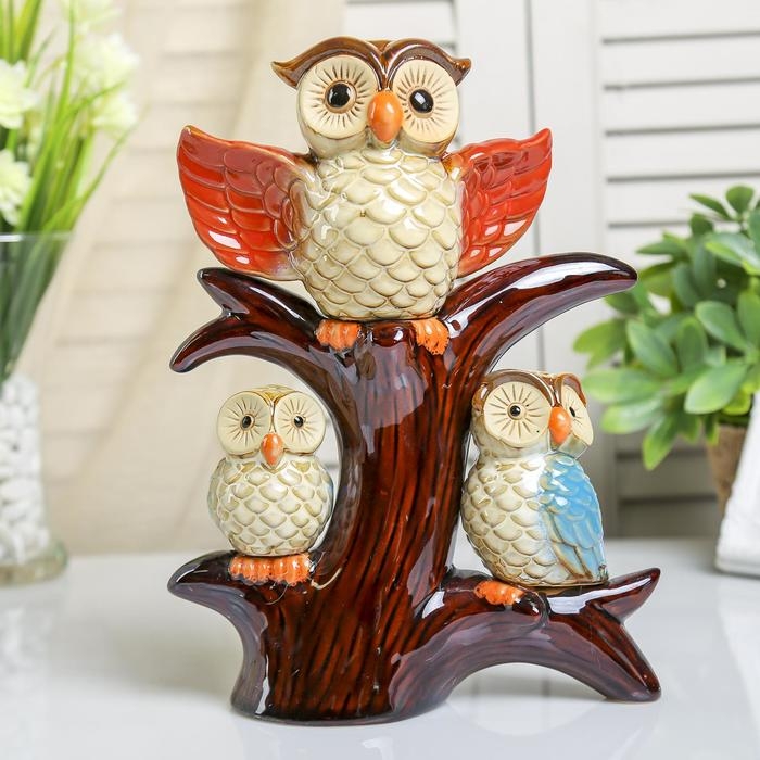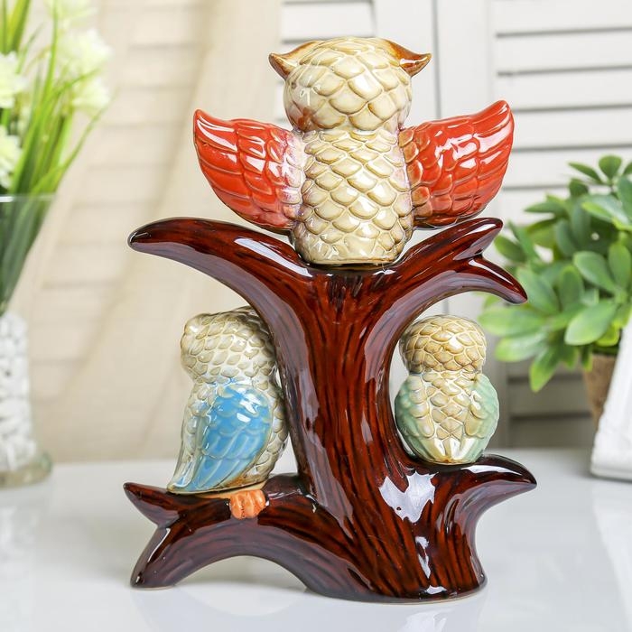Сувенир керамика "Три совушки на дереве" 24,5х19х6,5 см