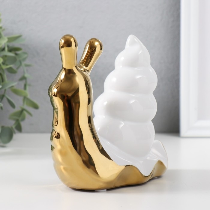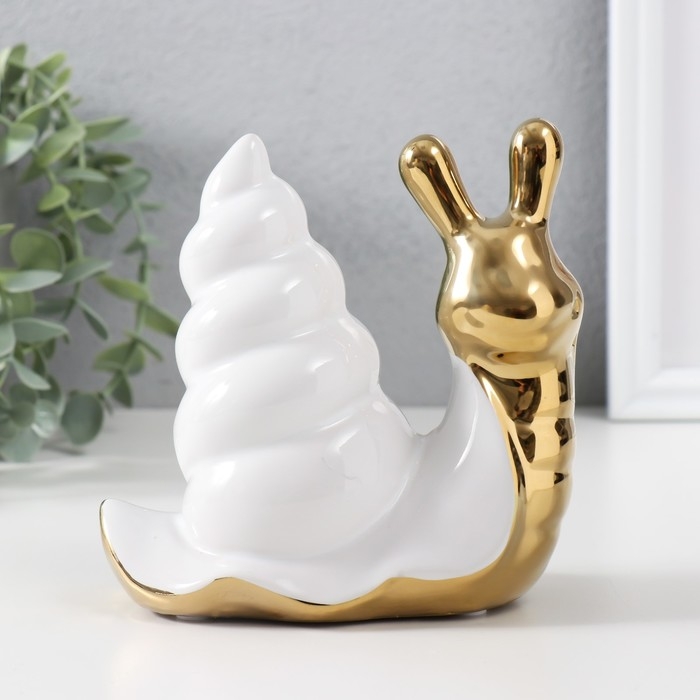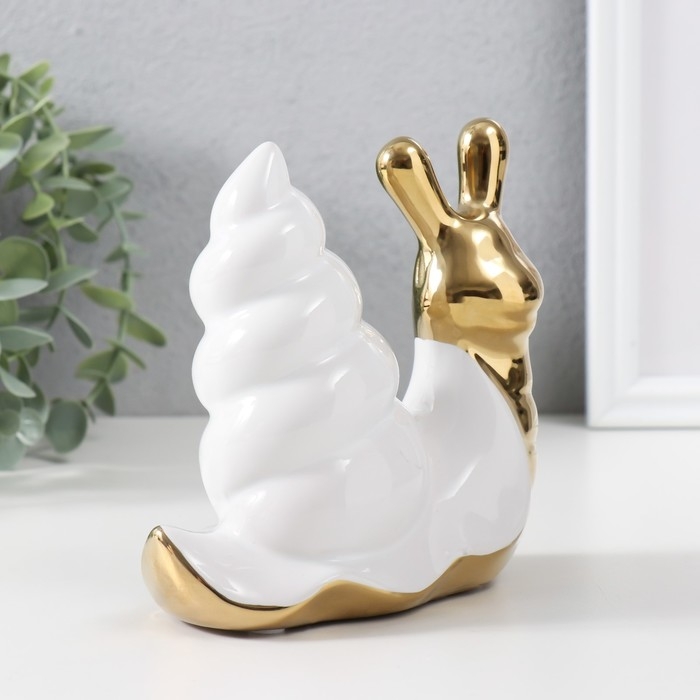 Сувенир керамика "Улитка" золото с белым 13,5х6,5х13,5 см