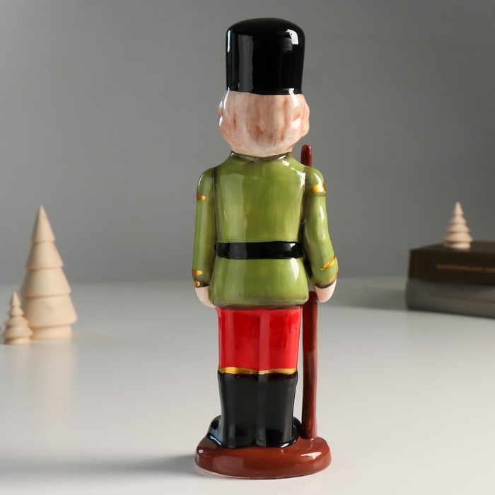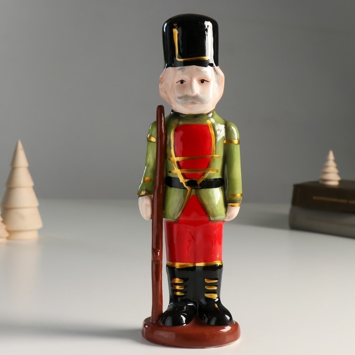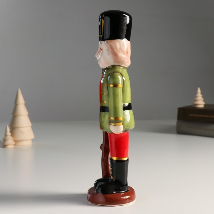 Сувенир керамика "Усатый щелкунчик в зелёно-красном камзоле с ружьём" 25х8х6,5 см