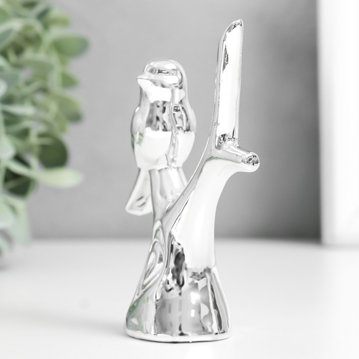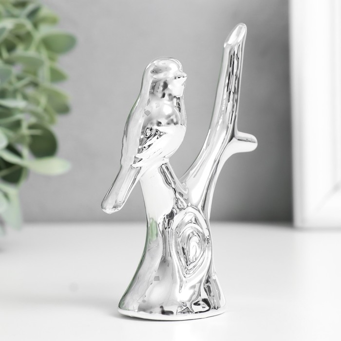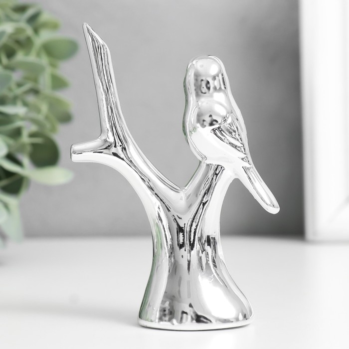 Сувенир керамика "Воробушек на дереве" серебро 7,5х3,7х10,5 см