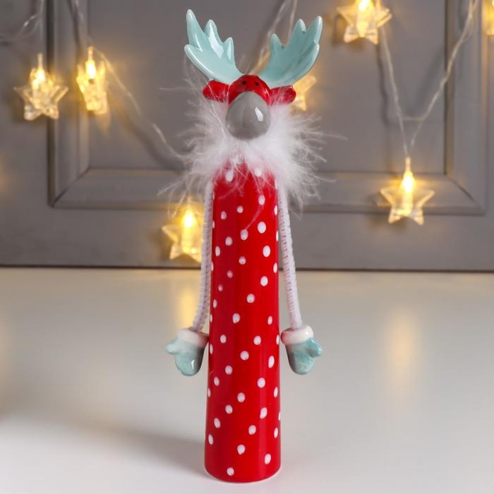 Сувенир керамика "Высокий лось" красный с бирюзовыми рогами 22,3х5х6,3 см