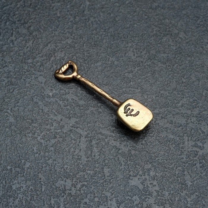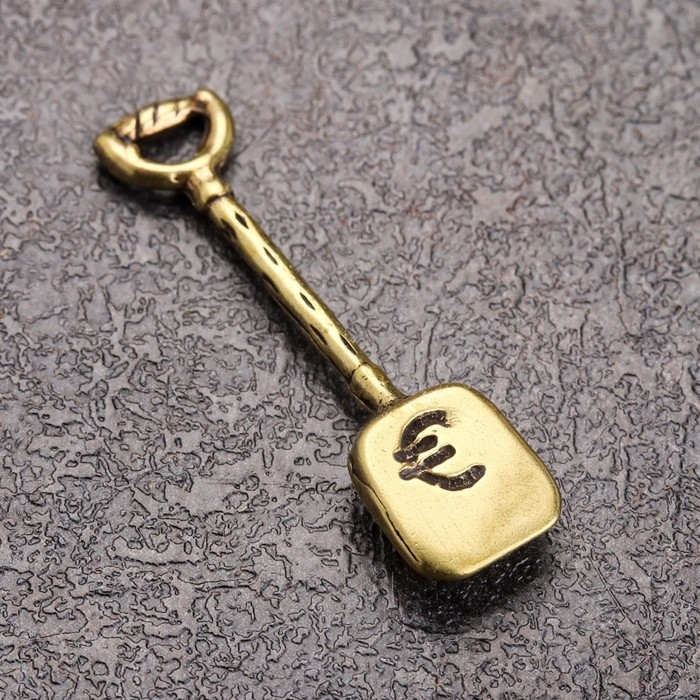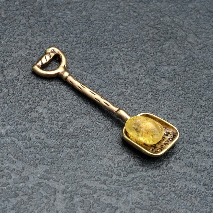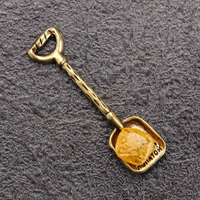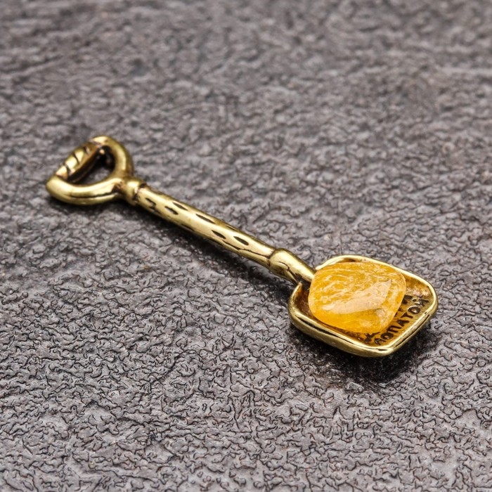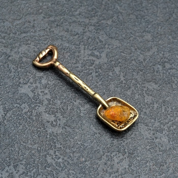 Сувенир кошельковый "Лопата", латунь, янтарь
