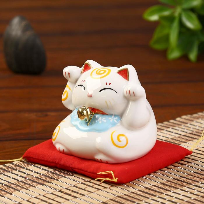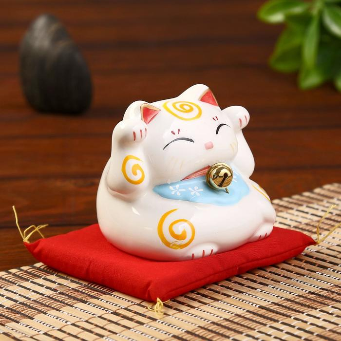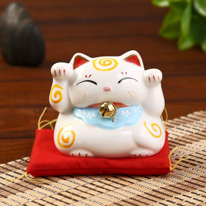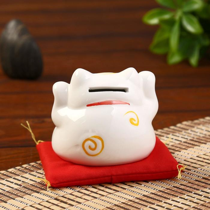 Сувенир кот копилка керамика "Манэки-нэко" h=7,5 см, белый