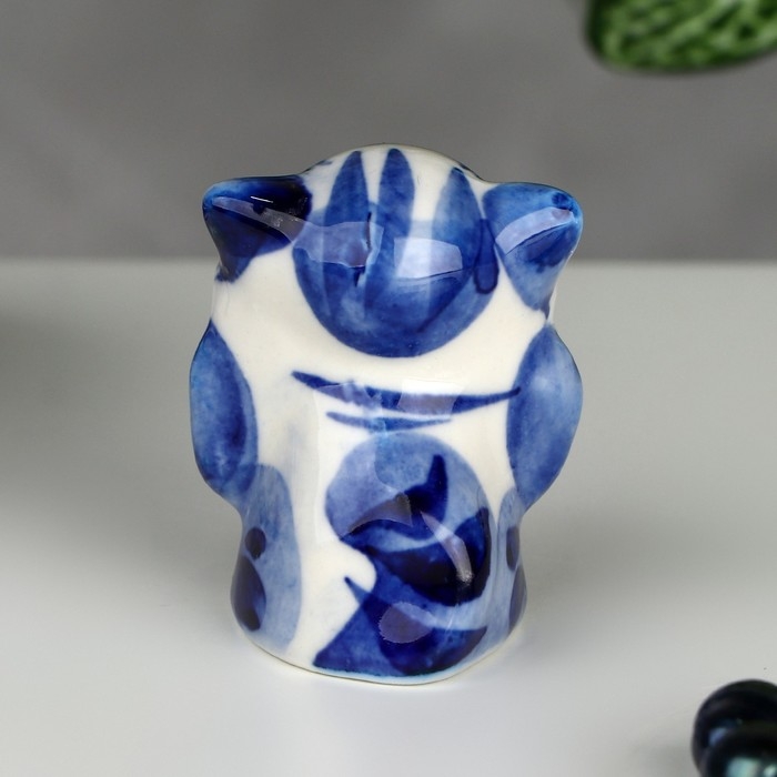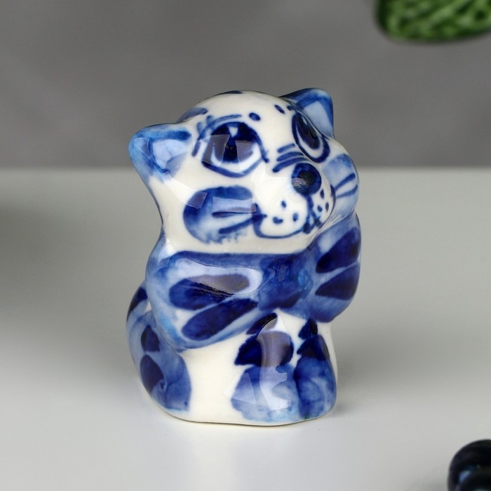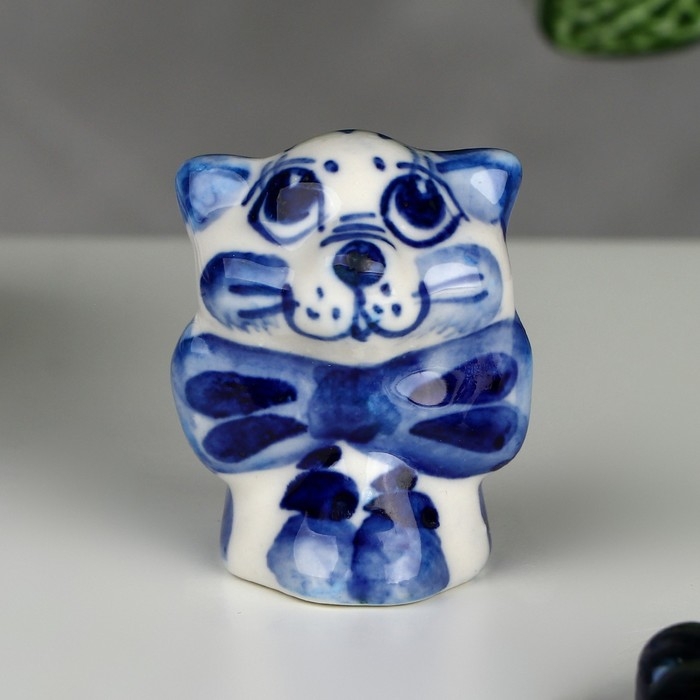 Сувенир «Кот с бантом», 3,5 см, гжель