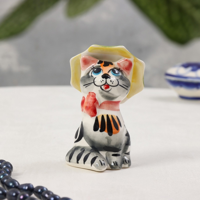 Сувенир «Кот с зонтом», гжель, цвет, 10х5 см