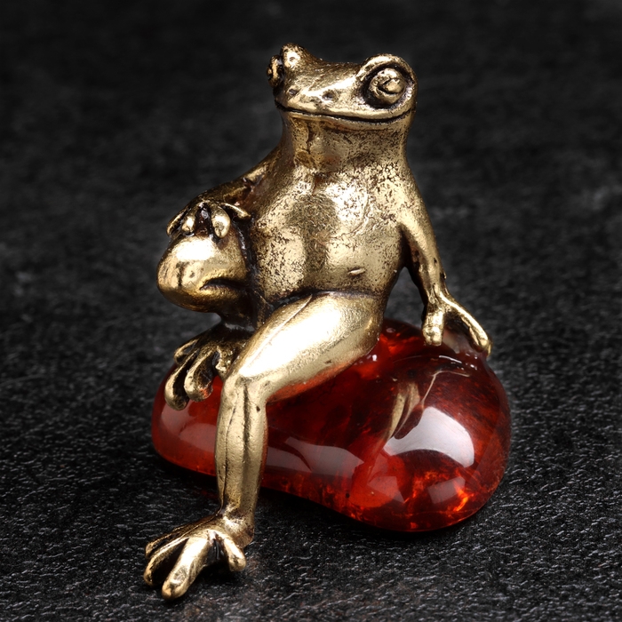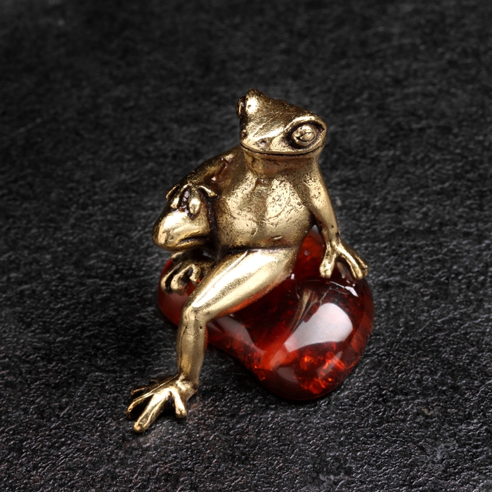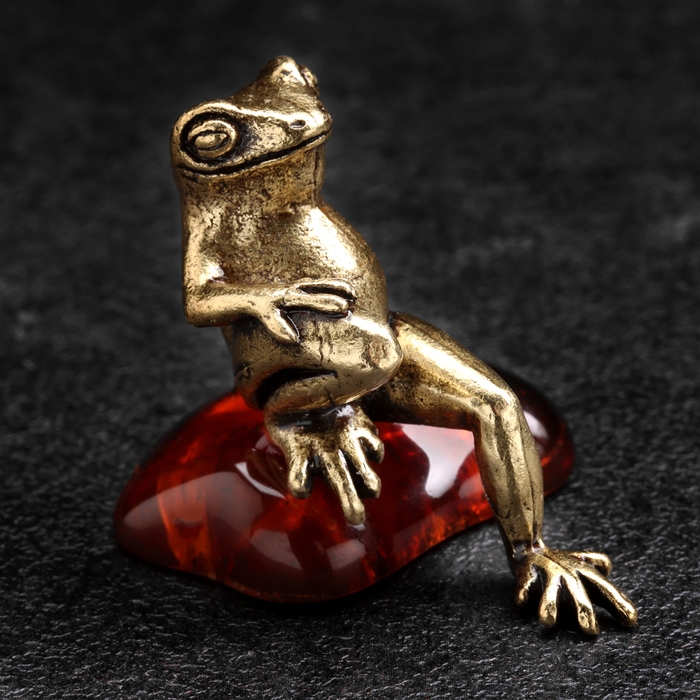 Сувенир "Лягушка Деловая", латунь, янтарь