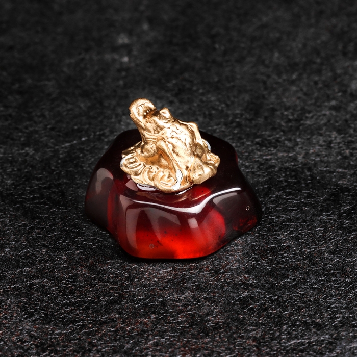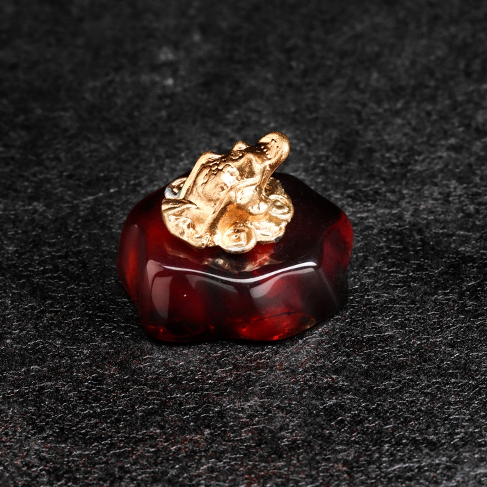 Сувенир "Лягушка с монетой", латунь, янтарь
