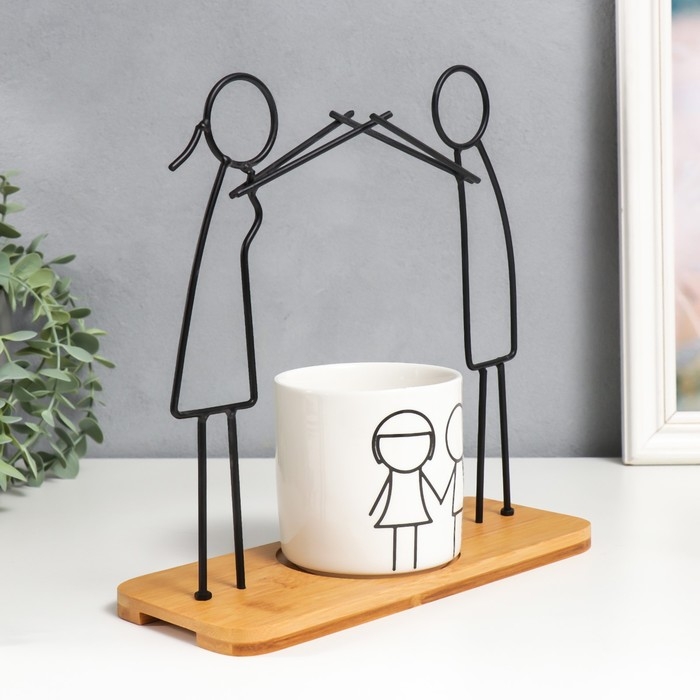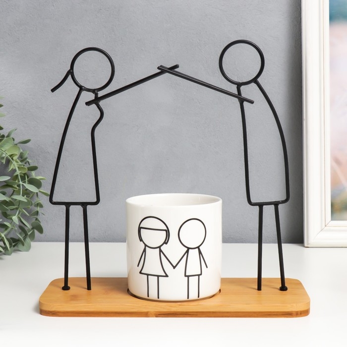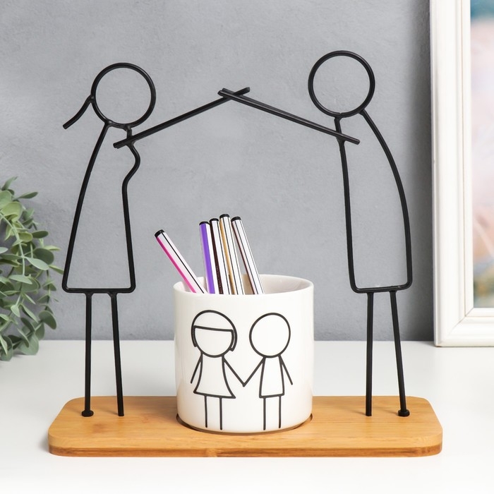 Сувенир металл карандашница "Парочка держатся за руки" 25х9,8х25 см