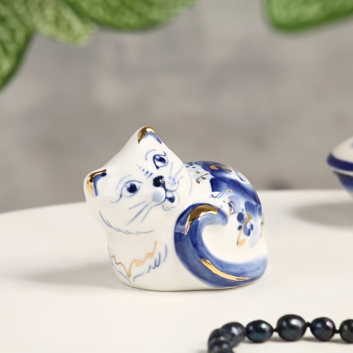 Сувенир "Мурка", 7 х 4,5 х 6 см, гжель, кобальт, золото