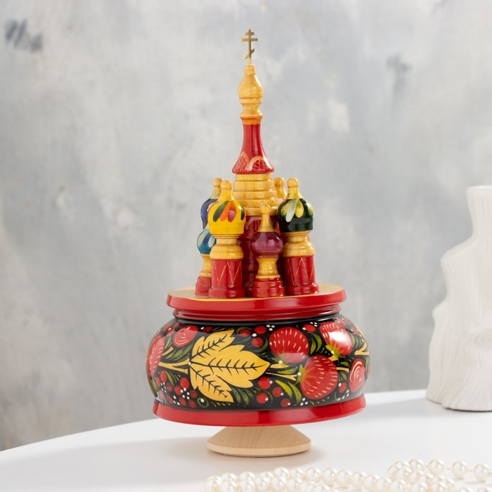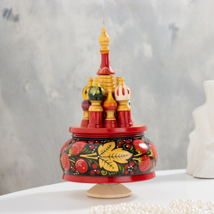 Сувенир музыкальный "Храм", хохлома черная ручная роспись