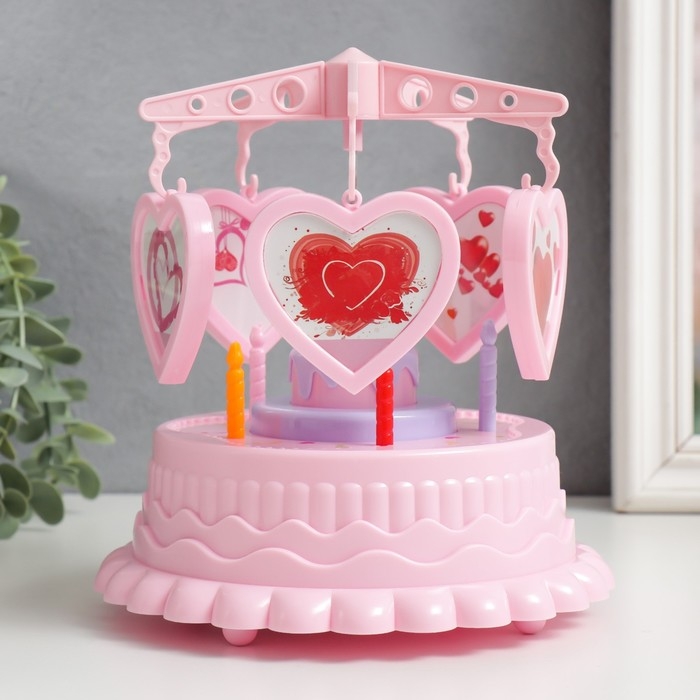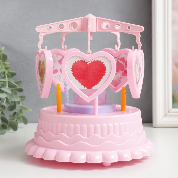 Сувенир музыкальный механический + фоторамка "Карусель сердец" розовый 17,5х17,5х20 см
