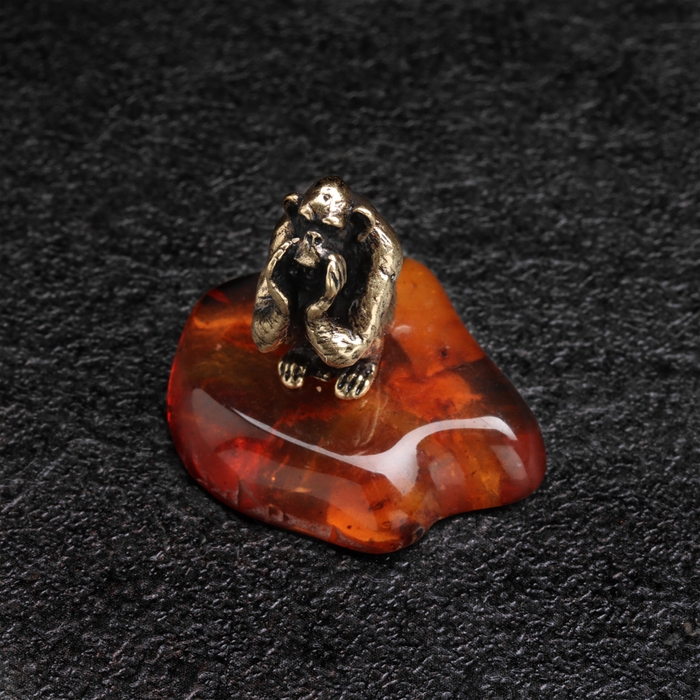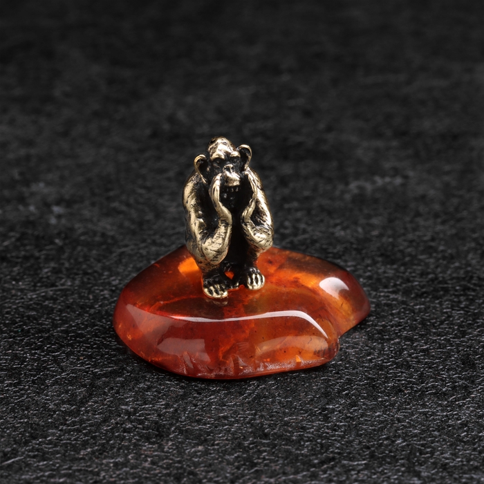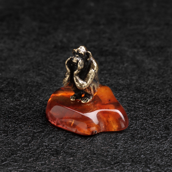 Сувенир "Обезьяна Все расскажу!", латунь, янтарь