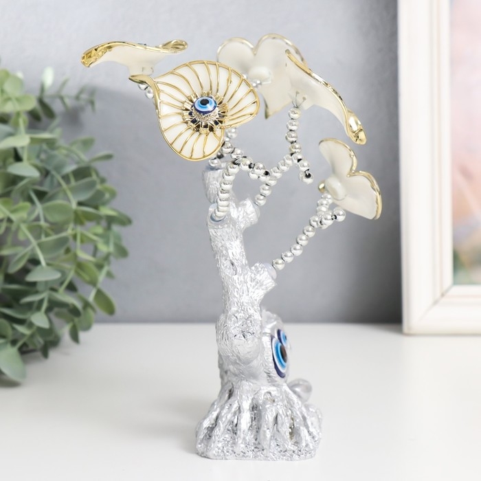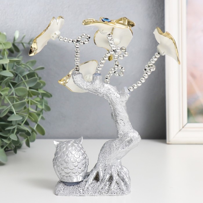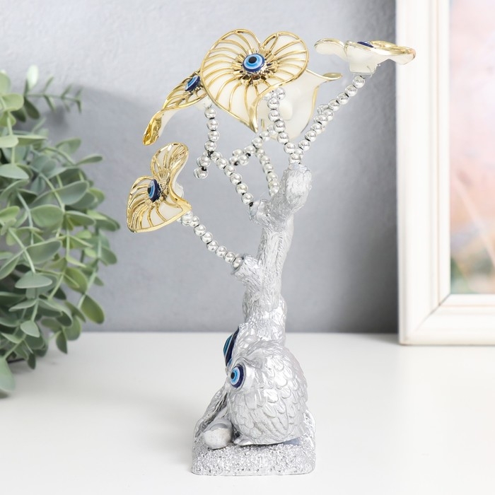 Сувенир от сглаза "Цветущее дерево, листья-сердце. Филин" серебро 15х5,7х20 см
