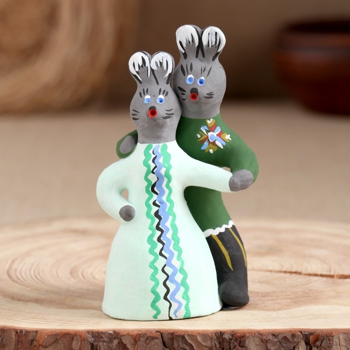 Сувенир «Парочка зайцев», 13,5×7×7 см, каргопольская игрушка, микс