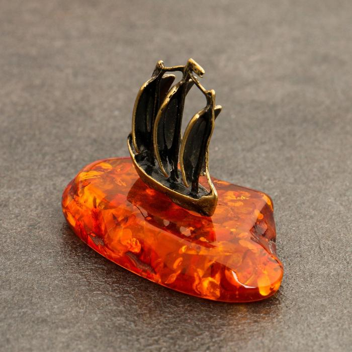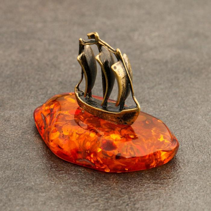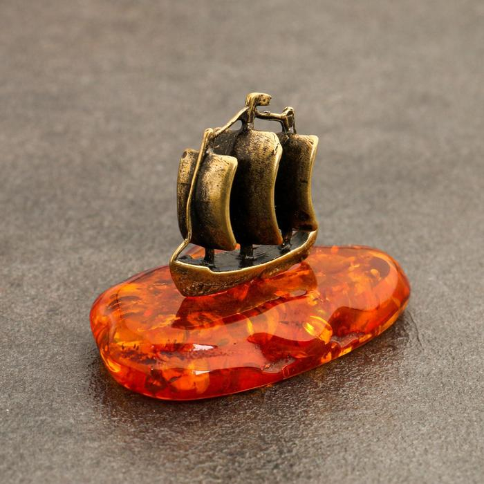 Сувенир "Парусник большой", латунь, янтарь, 2,3х1,0х2,3 см