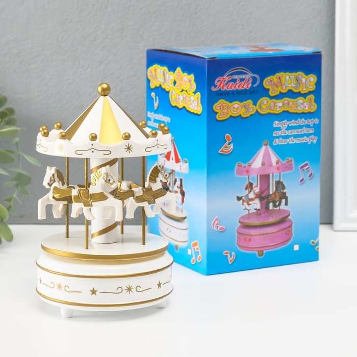 Сувенир пластик музыкальный механический "Карусель - лошадки" белый 10,5х10,5х17,5 см