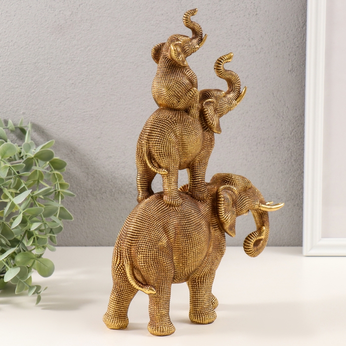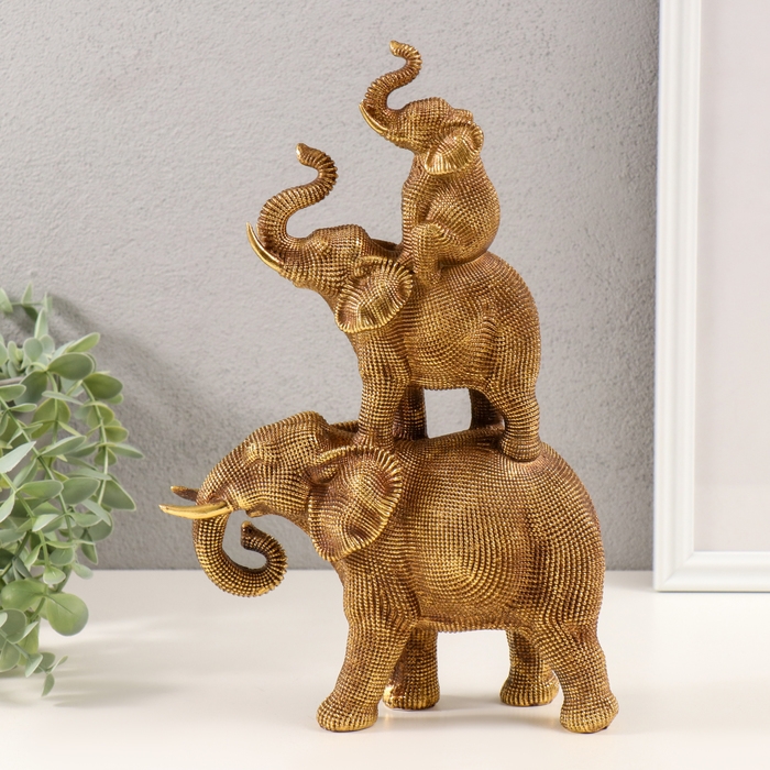 Сувенир полистоун 3D "Пирамида из слонов" тёмное золото 20х7х30 см