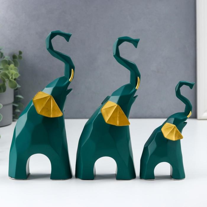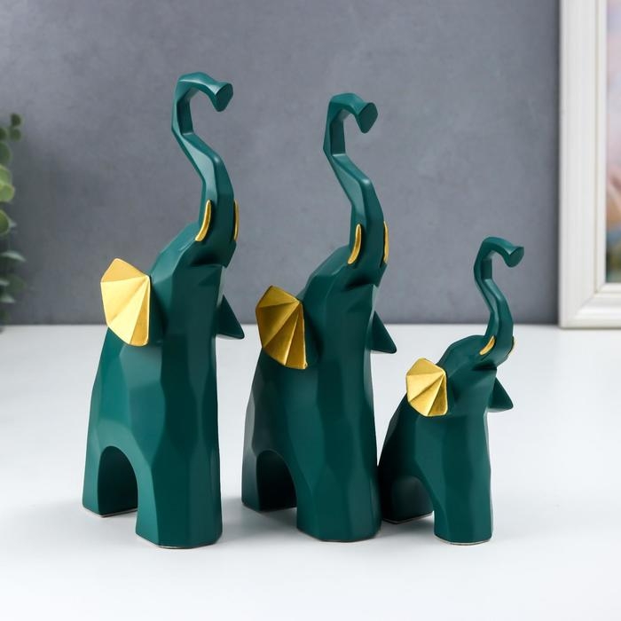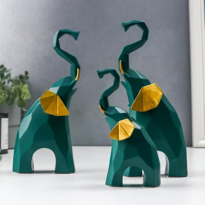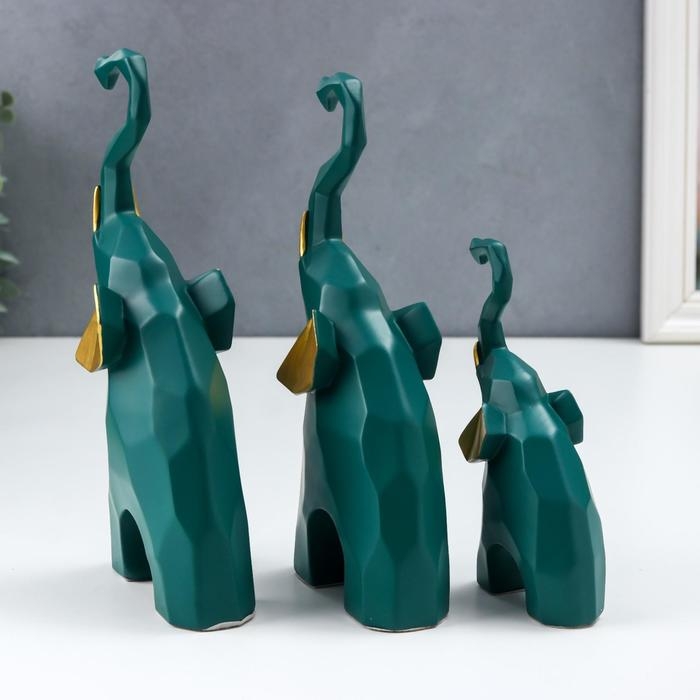 Сувенир полистоун 3D "Зелёные слоны" набор 3 шт 13,5х4,5х7,5 см 20х5,5х9,5 см 21х5,5х10 см
