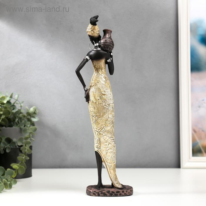 Сувенир полистоун "Африканка с кувшином в платье с пальмовыми листьями" МИКС 34,5х9,5х7,4 см 51204