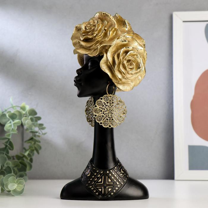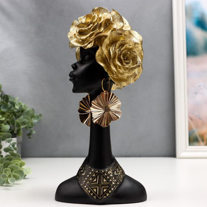 Сувенир полистоун "Африканка с золотыми розами в волосах" МИКС 28,5х13,5х10,5 см