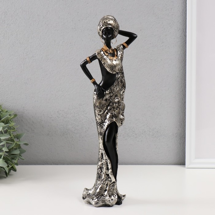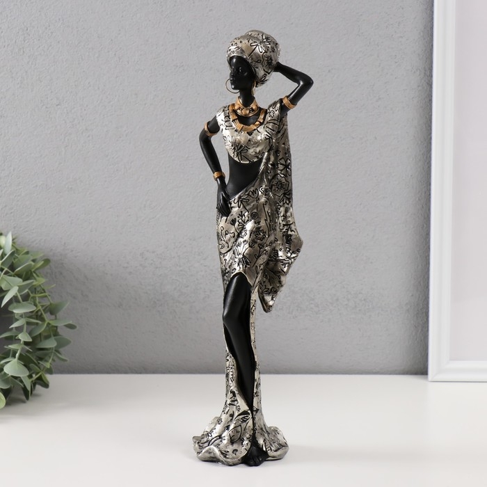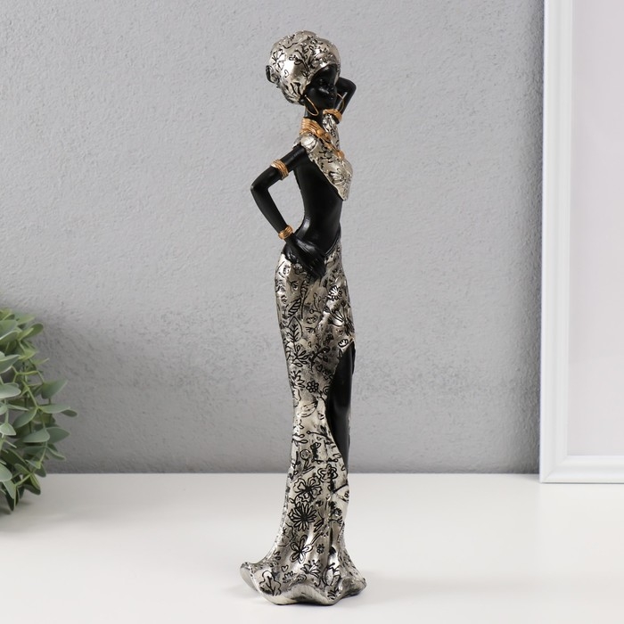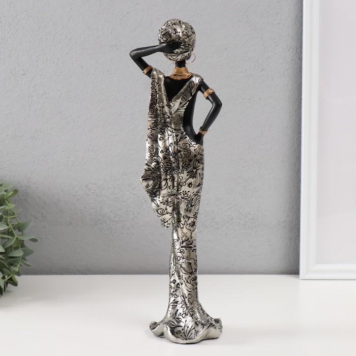 Сувенир полистоун "Африканка в серебряном одеянии с цветами" 11,5х8х36 см