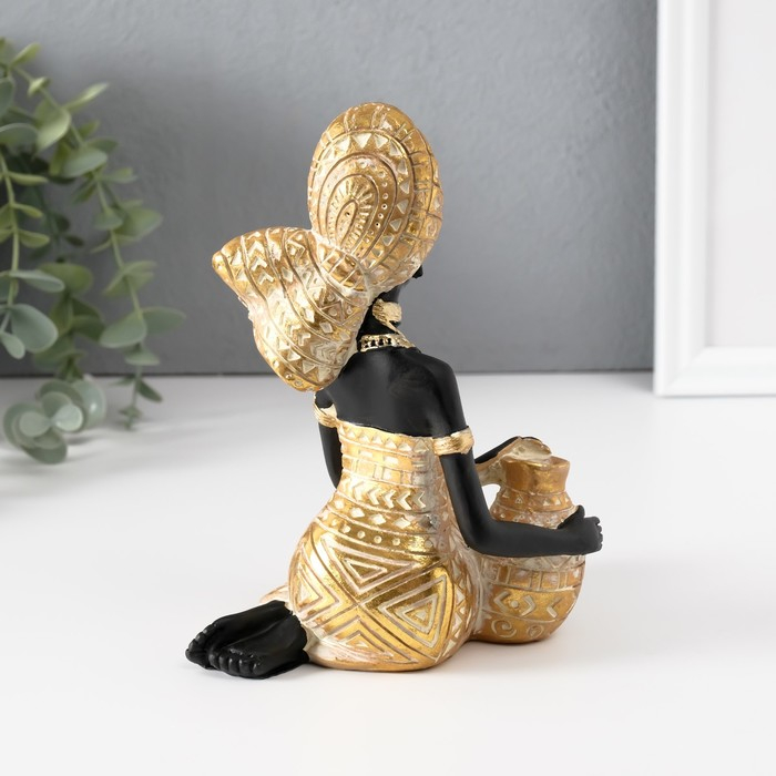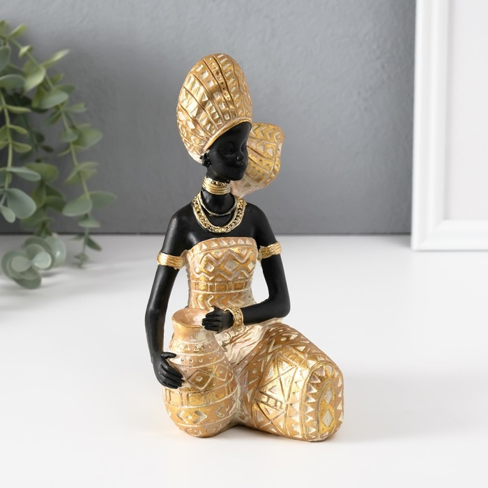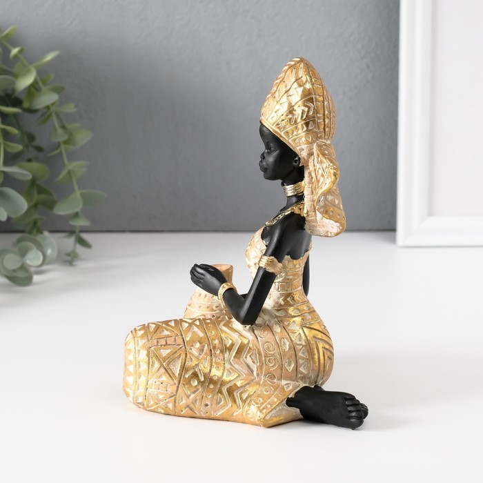 Сувенир полистоун "Африканка в золотом платье с орнаментом, с кувшином" 18х10х13 см