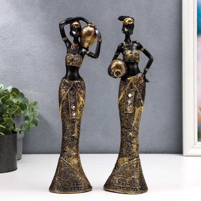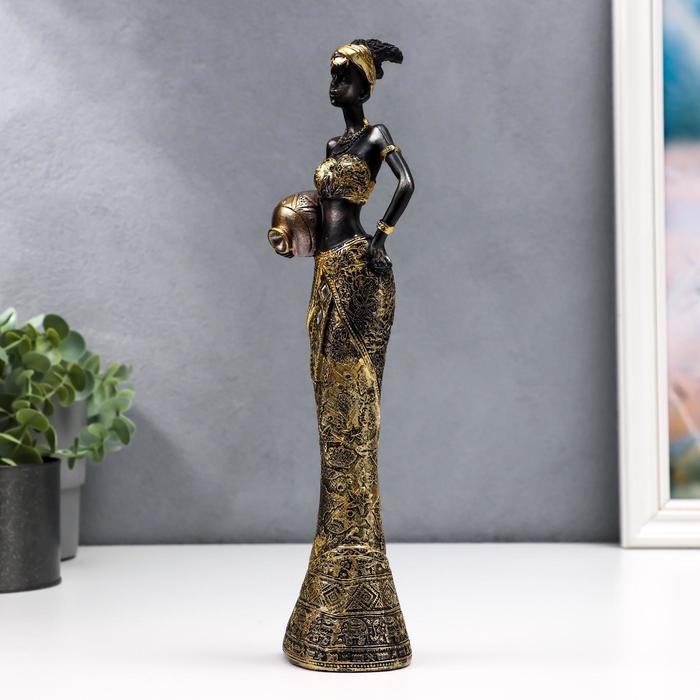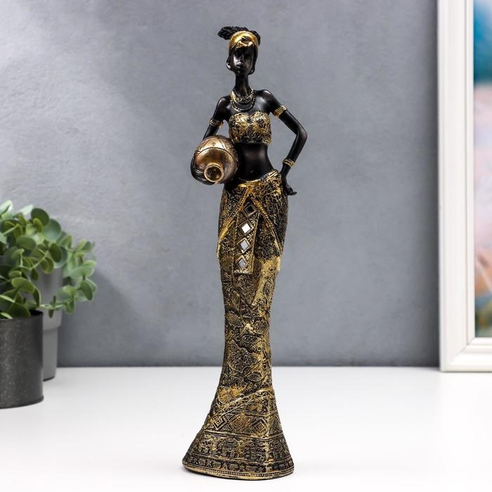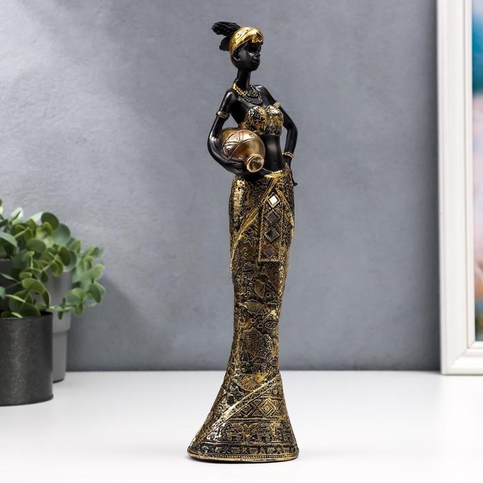 Сувенир полистоун "Африканка Зола с кувшином" платье со слонами МИКС 30,5х9,3х9 см
