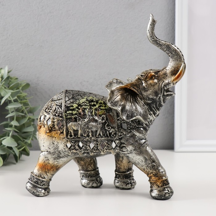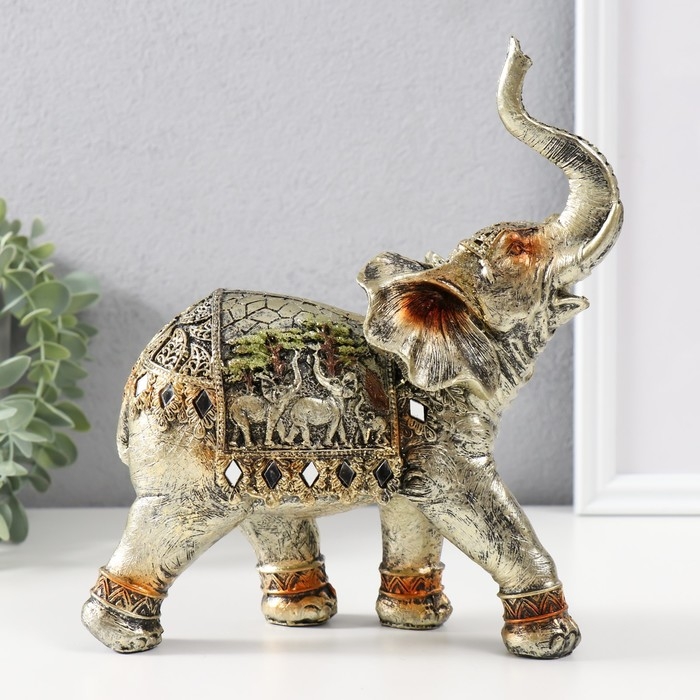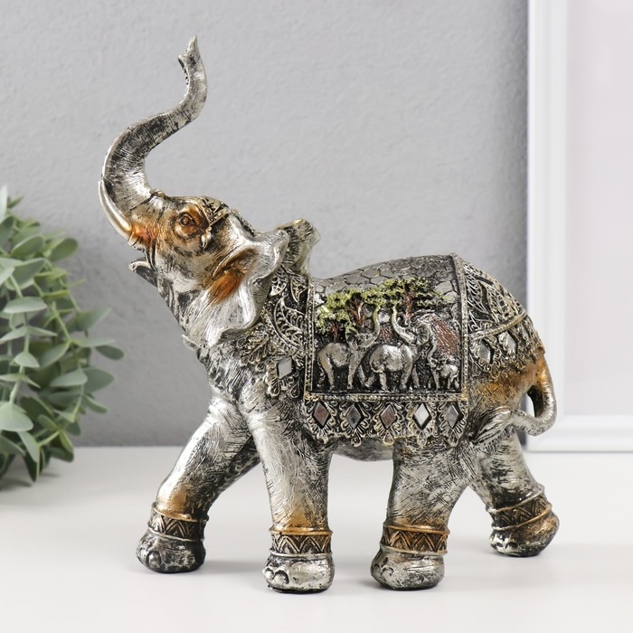 Сувенир полистоун "Африканский слон, на попоне слоны" 23х20,5х8,5 см