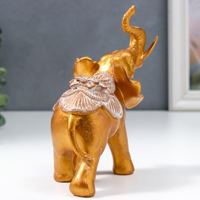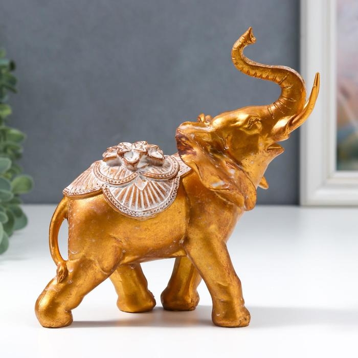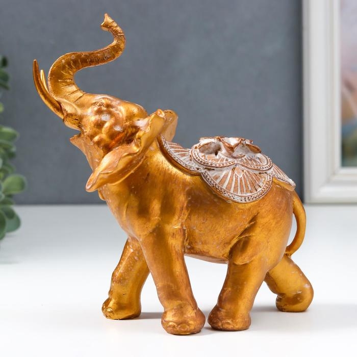 Сувенир полистоун "Африканский слон с цветком на попоне" под бронзу 17х8,5х17 см
