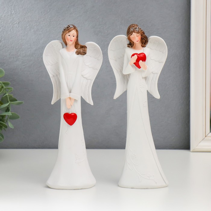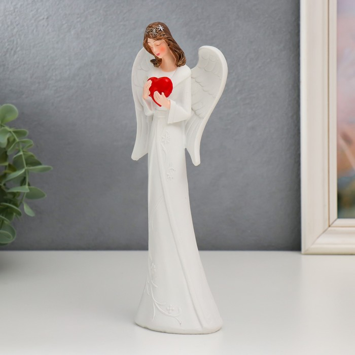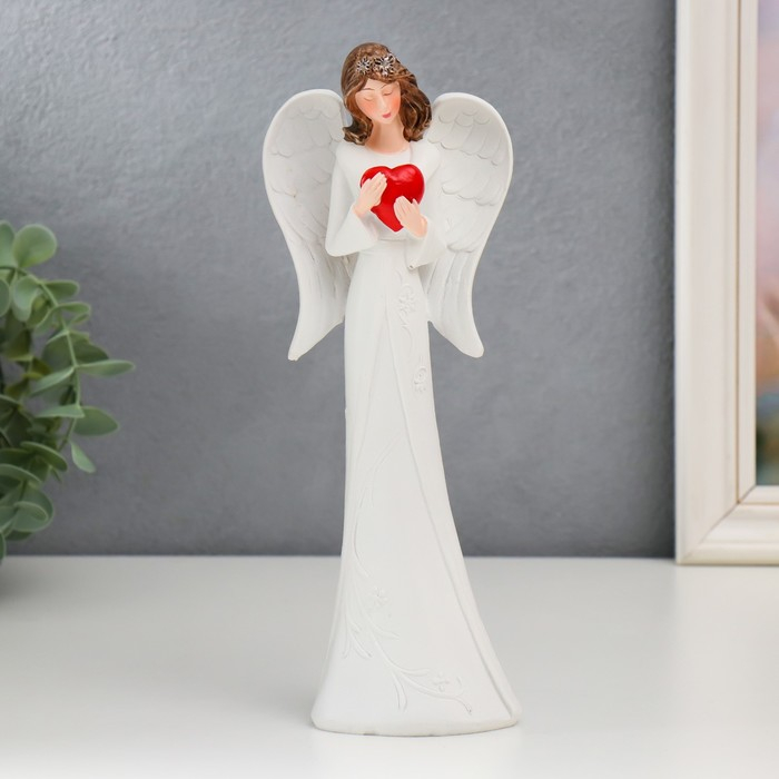 Сувенир полистоун "Ангел-девушка с красным сердцем" МИКС 25 см