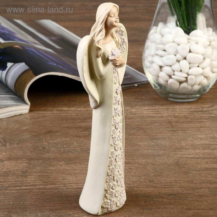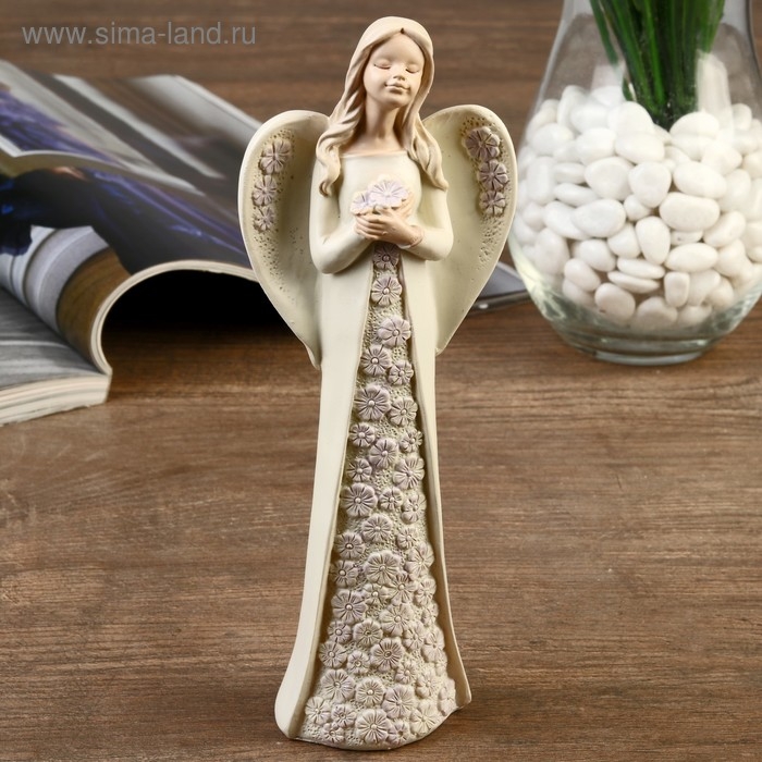 Сувенир полистоун "Ангел-девушка в платье с цветами" 19,7х7,2х4,5 см