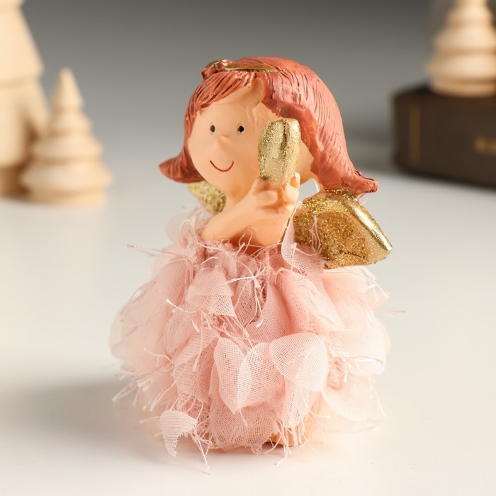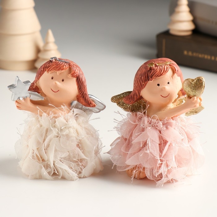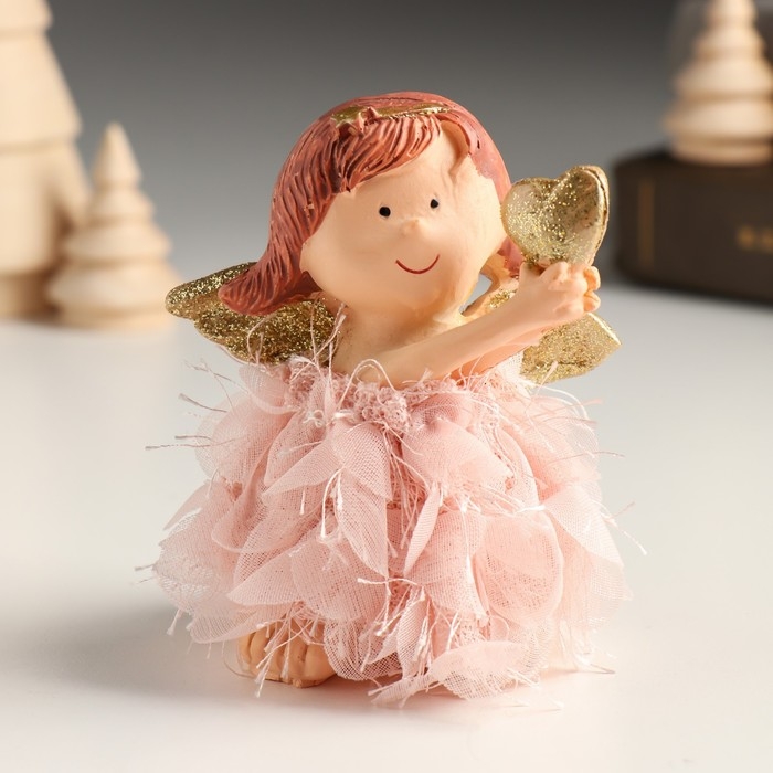 Сувенир полистоун "Ангел-малышка в платье с лепестками с сердцем/звездой" МИКС 7,5х5х9,3 см 949145