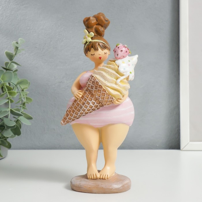 Сувенир полистоун "Аппетитная толстушка с рожком мороженого" 22х9х9,5 см