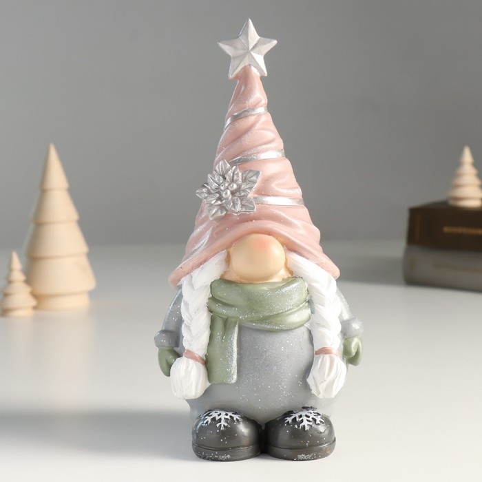 Сувенир полистоун "Бабуля с косичками в розовом колпаке со звездочкой" 9,5х8х20,7 см