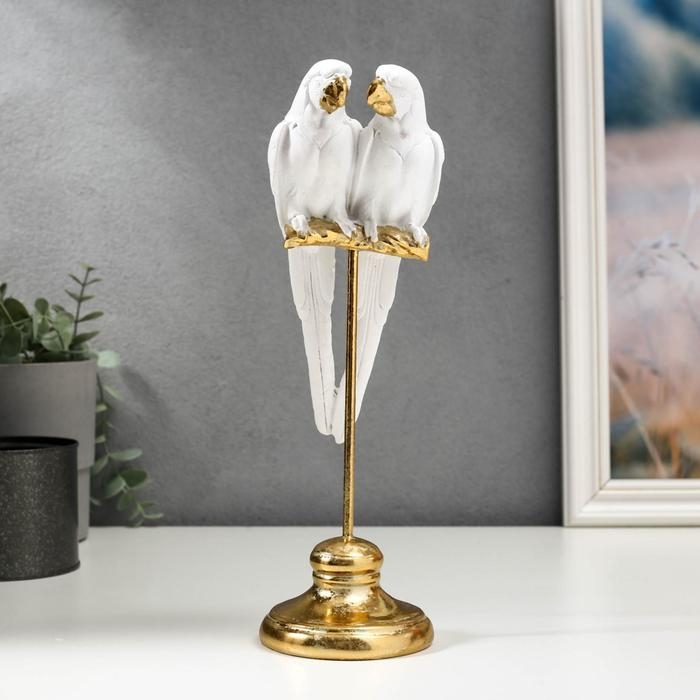 Сувенир полистоун "Белые попугаи Ара на золотой жёрдочке" 27,5х8,5х8,5 см