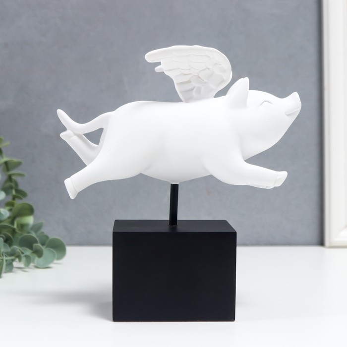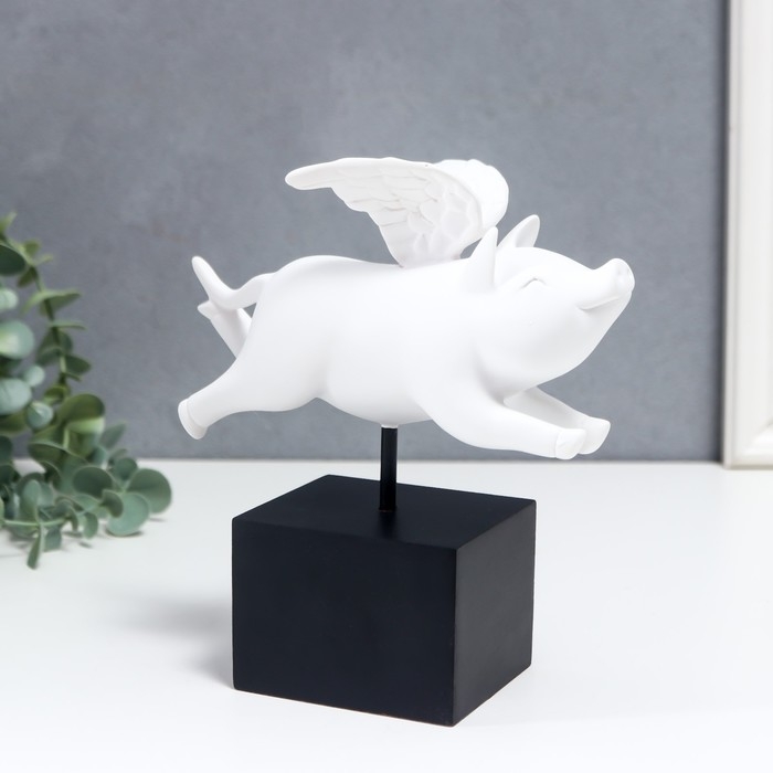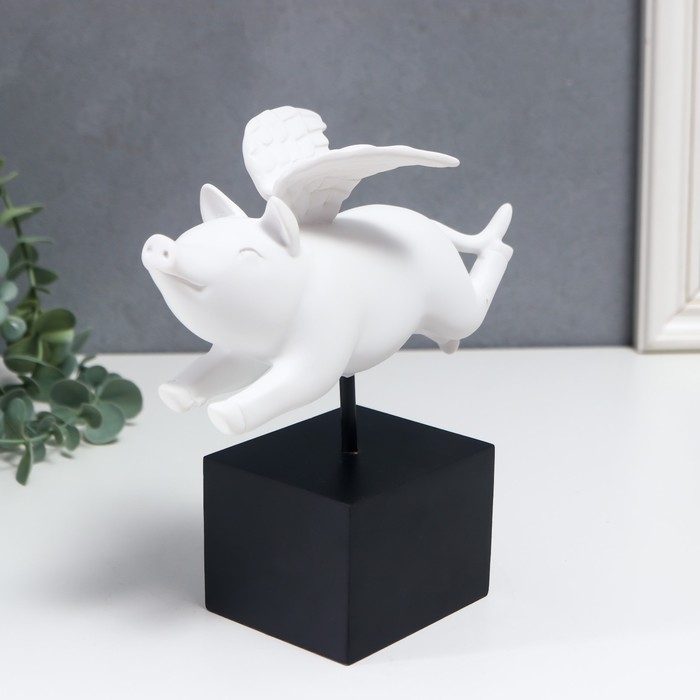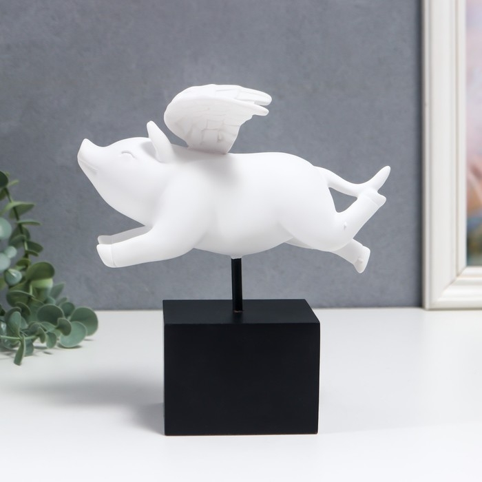 Сувенир полистоун "Белый свин с крыльями" 18х8х17 см