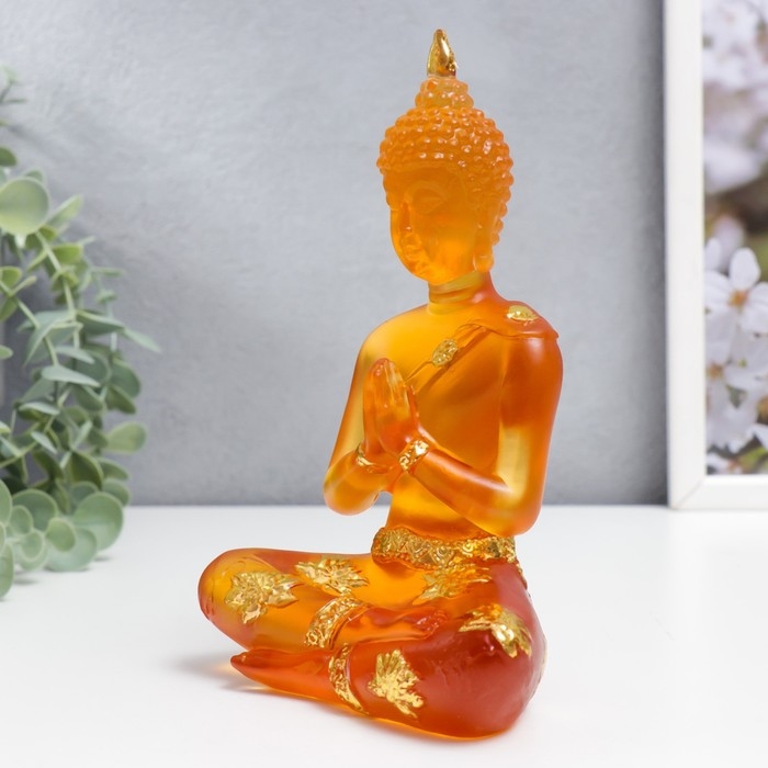 Сувенир полистоун "Будда Анджали Мудра - молитва" оранжевый 18х12х6 см
