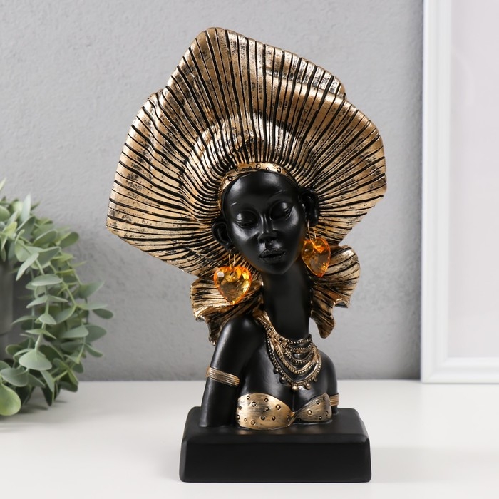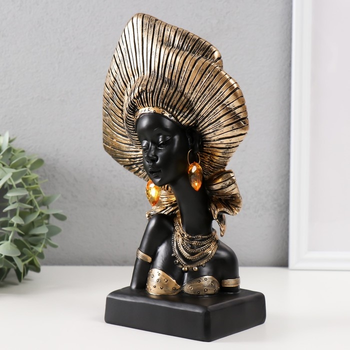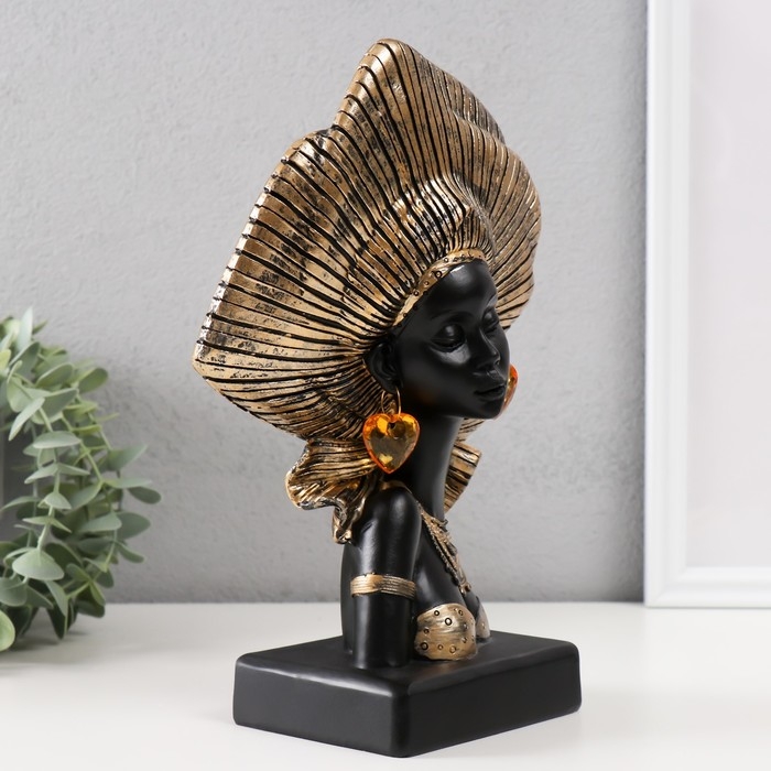 Сувенир полистоун бюст "Африканка в геле (головной убор)" золото 17х9х26 см
