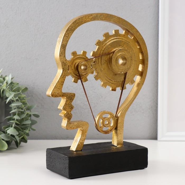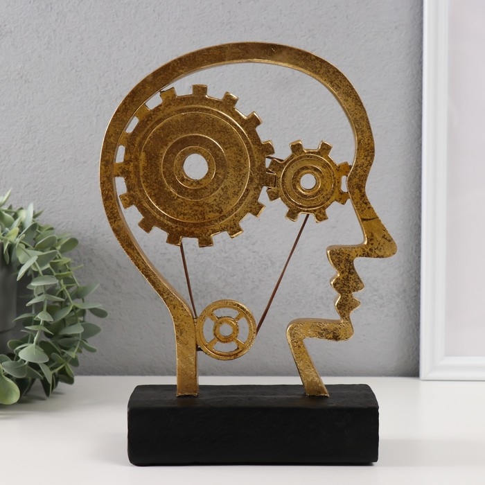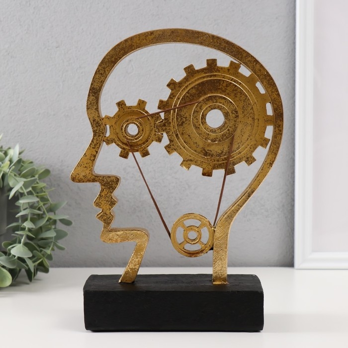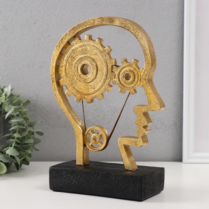 Сувенир полистоун бюст "Человек с шестерёнками в голове" золото 16х8х26 см