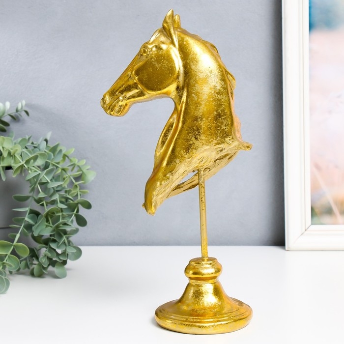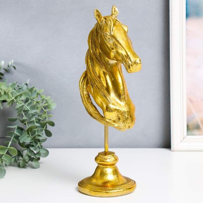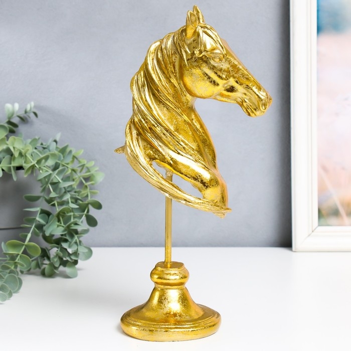 Сувенир полистоун бюст "Голова коня" золотой 10х11х31,5 см