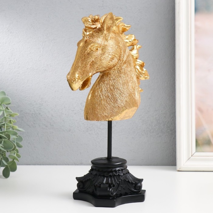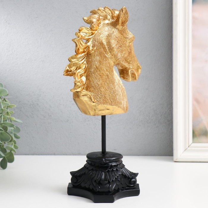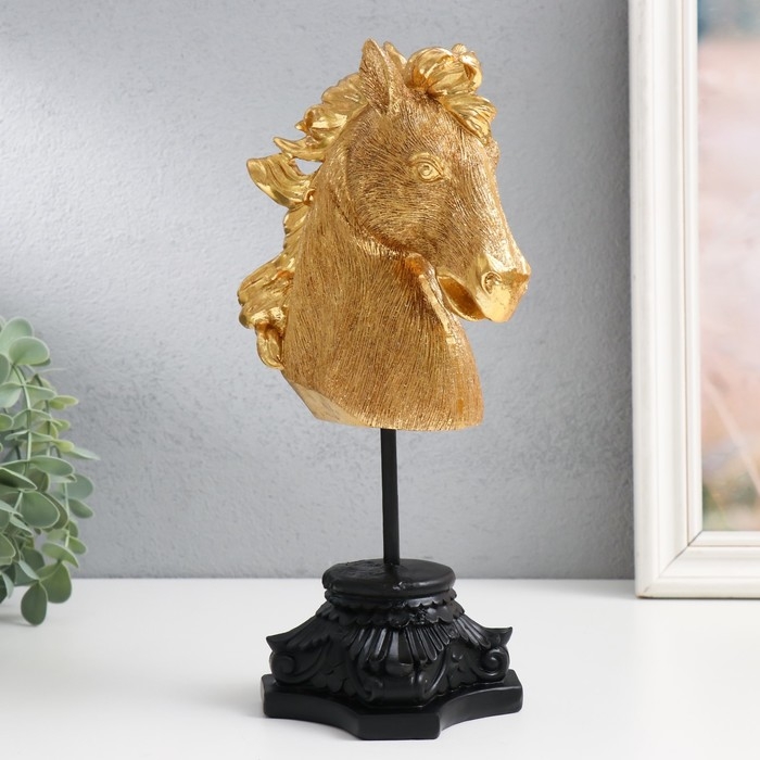 Сувенир полистоун бюст "Голова ржущего коня" золото 10,5х14х27 см