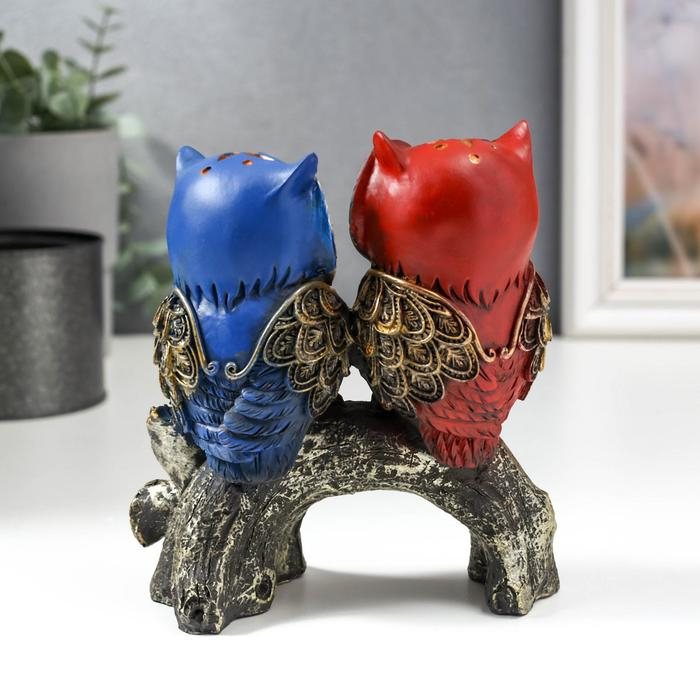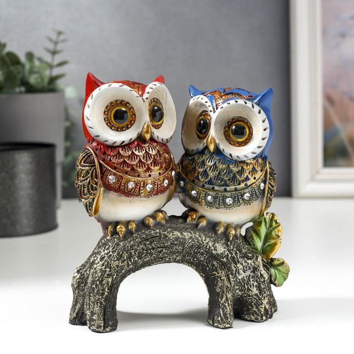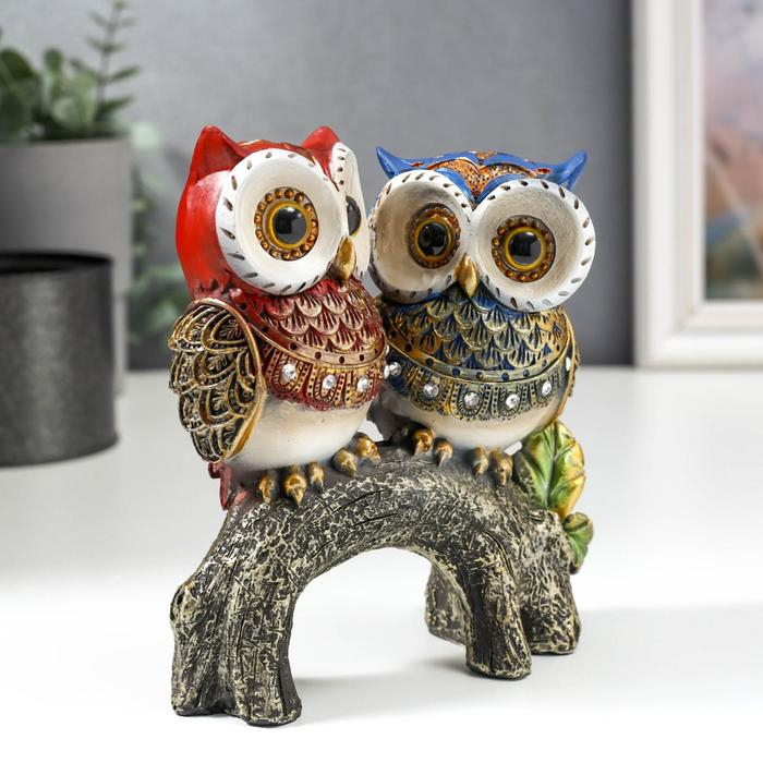Сувенир полистоун "Цветные филины со стразами на ветке" 15х13х7,5 см