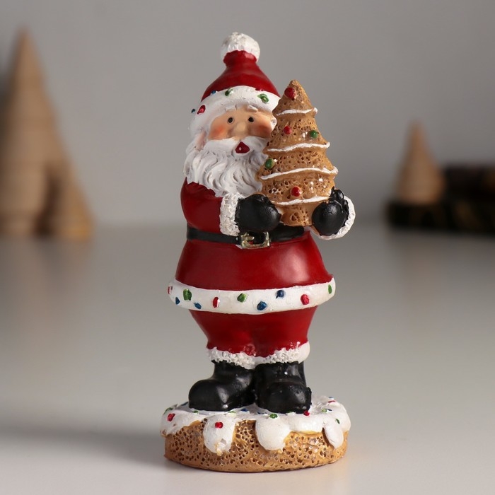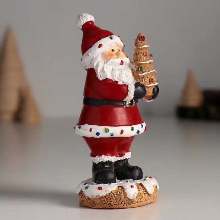 Сувенир полистоун "Дед мороз с пряничной ёлочкой" 4,5х4,5х10,5 см