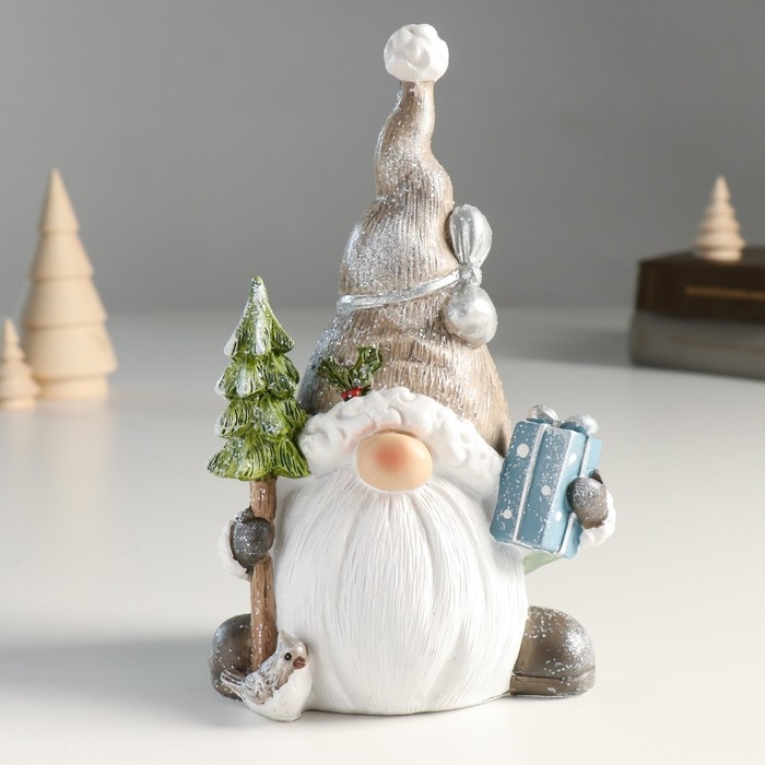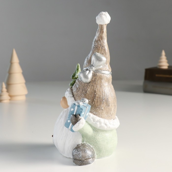 Сувенир полистоун "Дед Мороз в колпаке с бантиком, с ёлочкой и подарком" 7,5х11х19 см