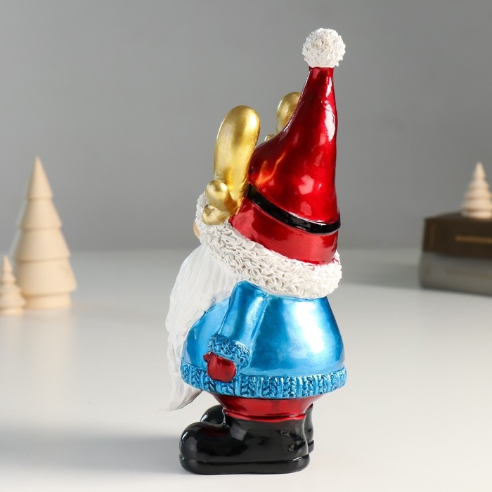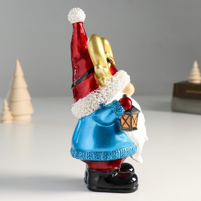 Сувенир полистоун "Дед Мороз в колпаке с рожками, с фонариком" 10х8х21,5 см